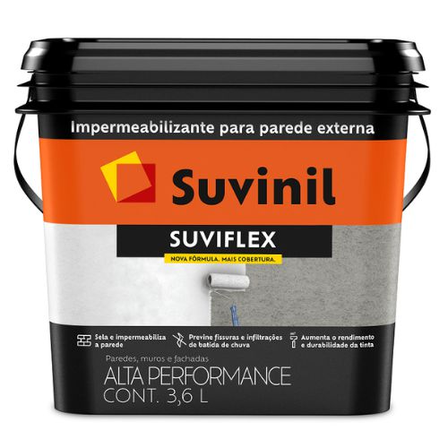Suviflex protege as paredes porque é um fundo impermeabilizante que forma uma camada flexível e elástica, prevenindo que as fissuras reapareçam. Além disso, Suviflex tem uma boa cobertura e durabilidade: com apenas duas demãos, você já pode aplicar sua tinta Suvinil favorita! Indicado para impermeabilização de paredes expostas a chuva, superfícies de concreto e fibrocimento, restauração de fachadas e paredes pintadas com PVA ou Acrílico.